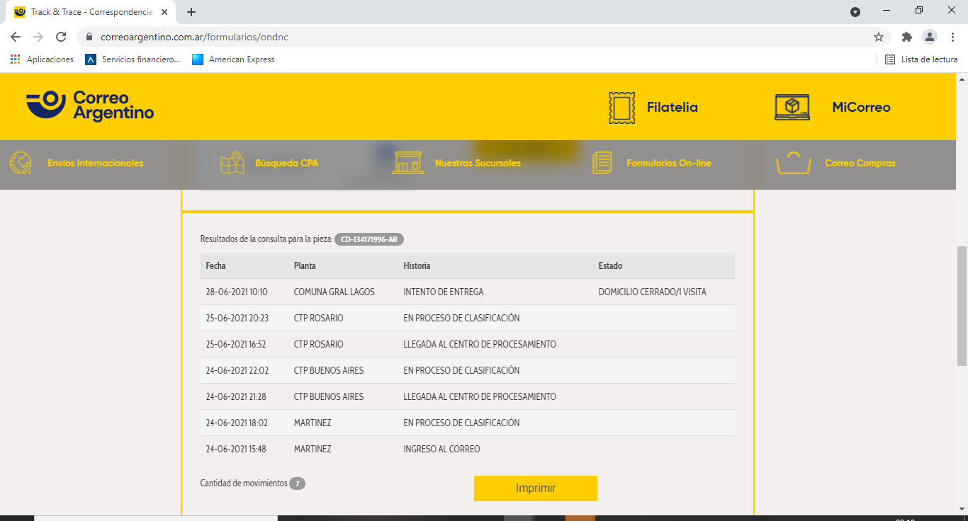 Adjunto carta documento de BUNAR y detalle de seguimiento.